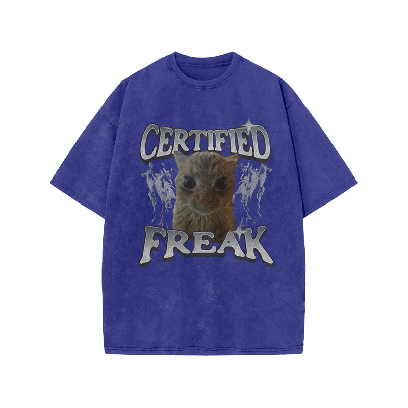 Unisex Certified Freak Funny Cat Print Acid Washed T-shirt