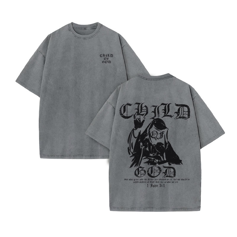 Unisex CHILD OF GOD Print Acid Washed T-shirt