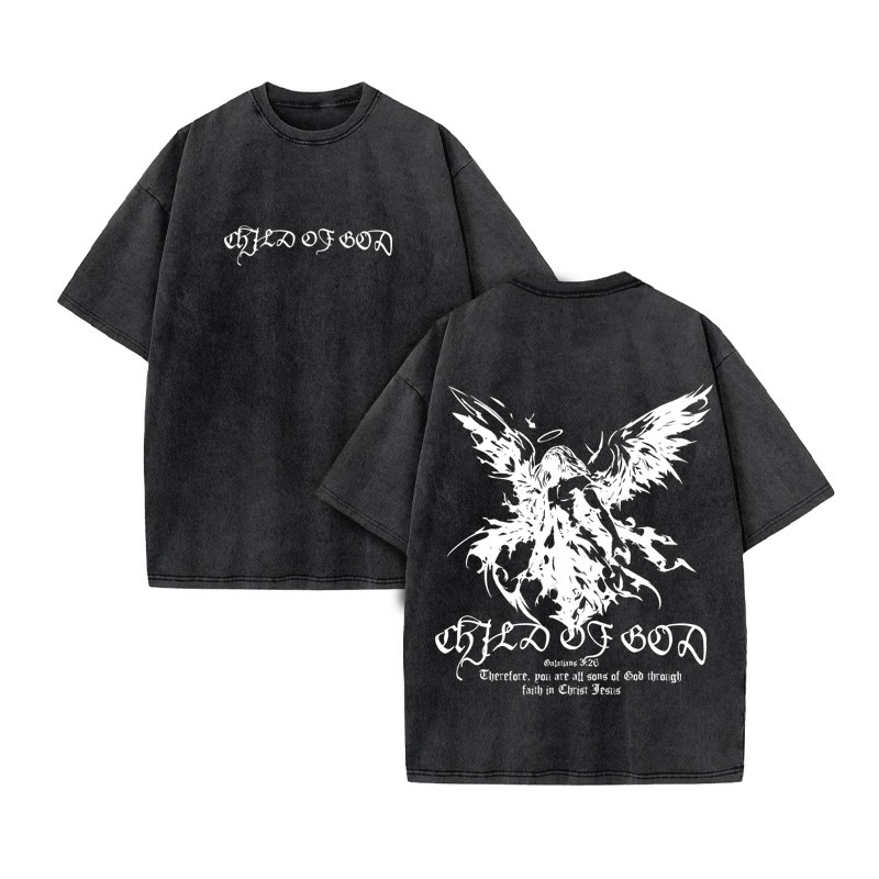 Unisex CHILD OF GOD Print Acid Washed T-shirt