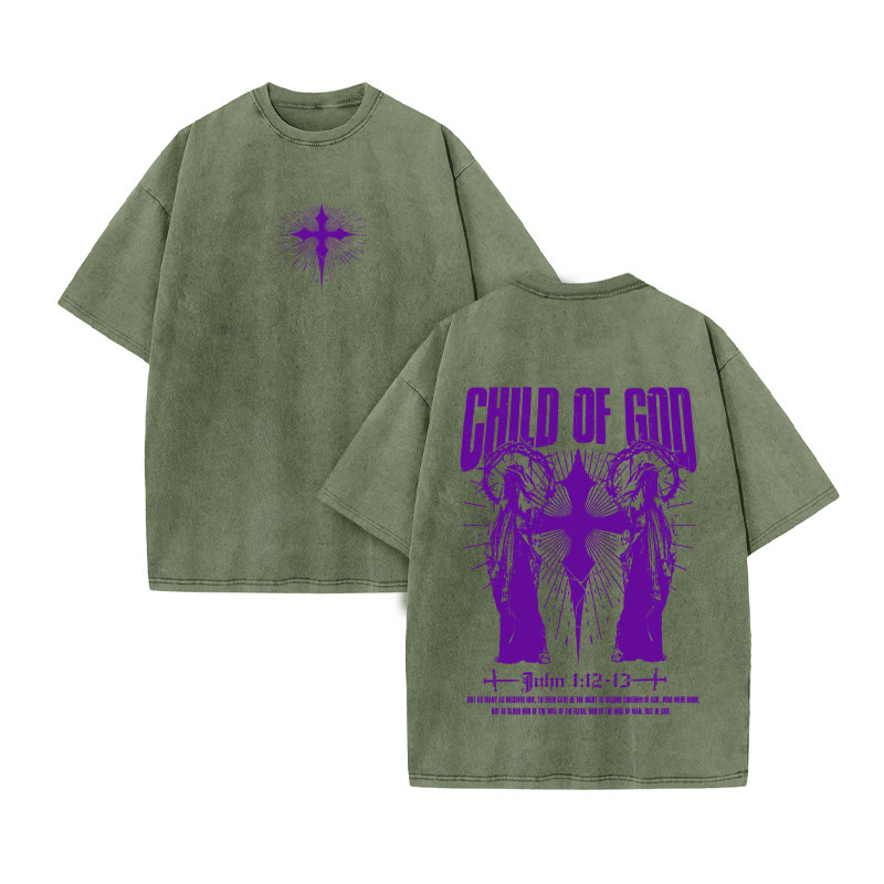 Unisex CHILD OF GOD Print Acid Washed T-shirt