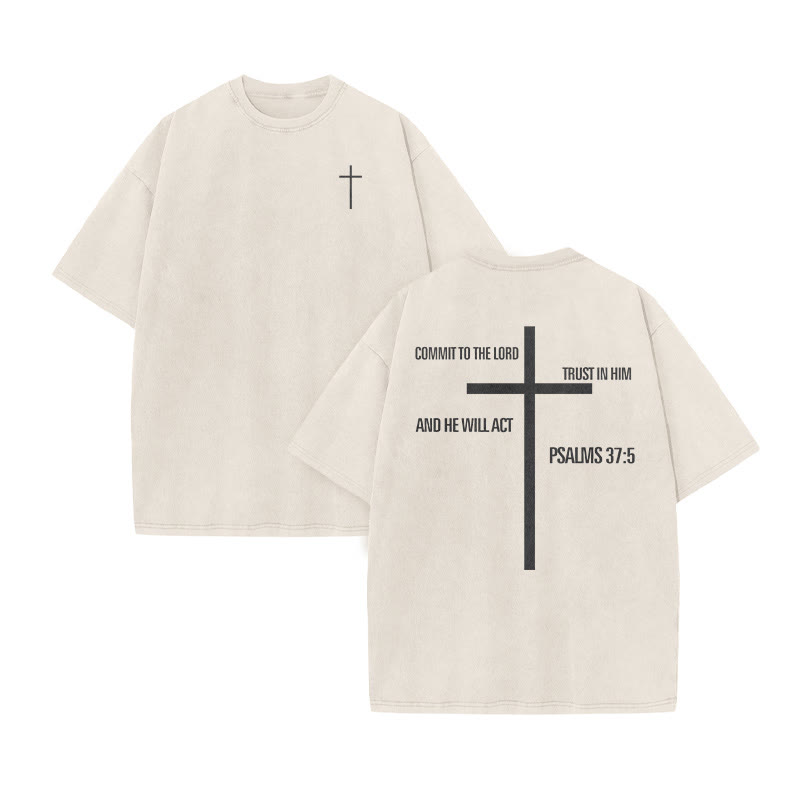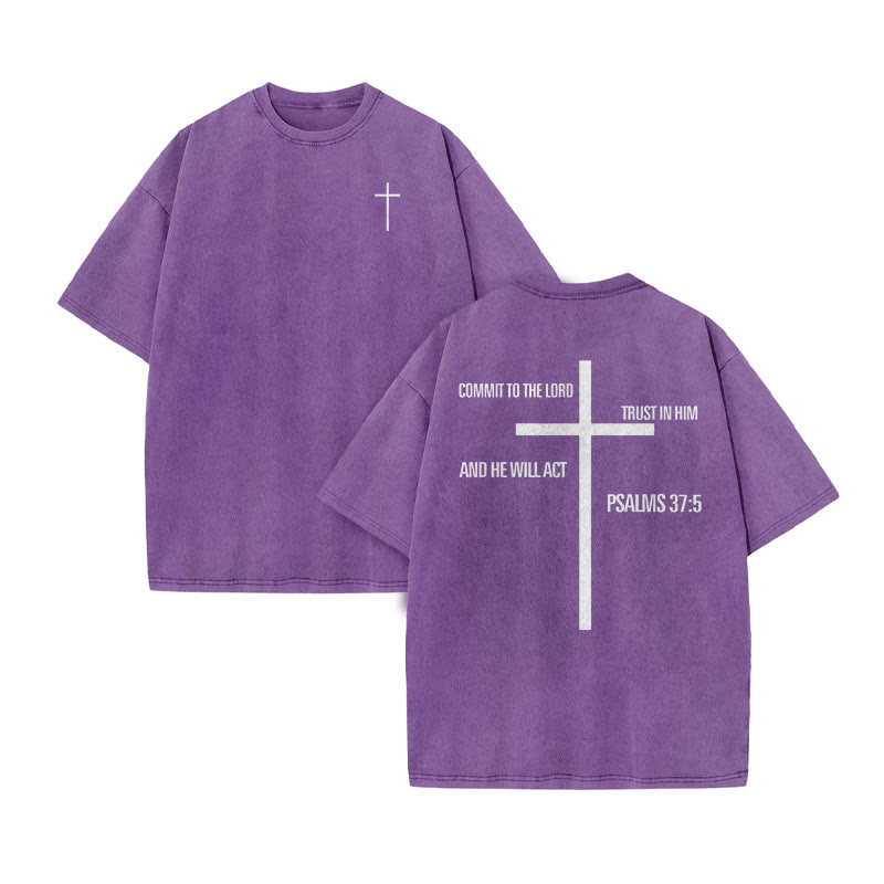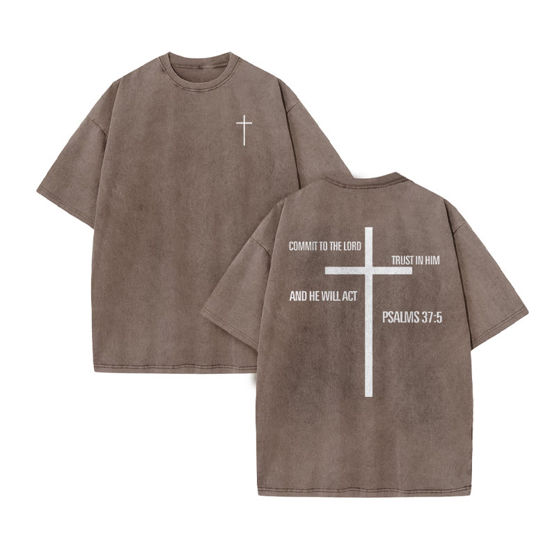 Unisex Commit To The Lord Trusy In Him And He Will Act Print Acid Washed T-shirt