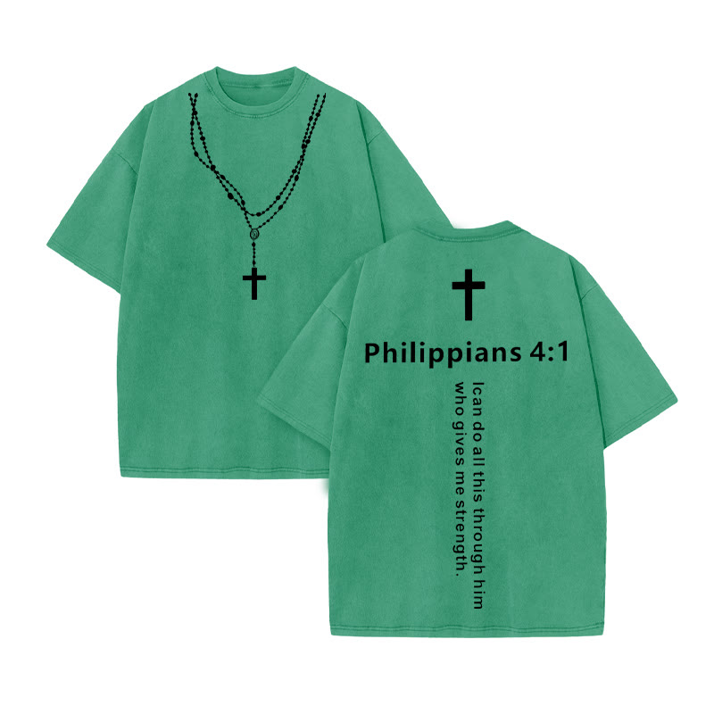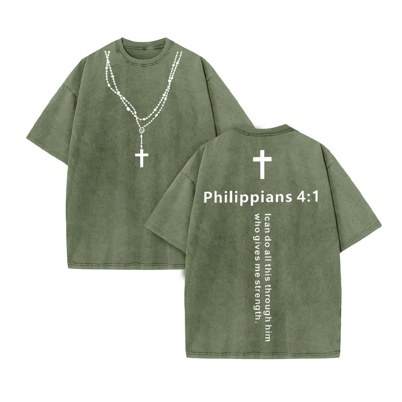 Unisex Cross Necklace Print Acid Washed T-shirt