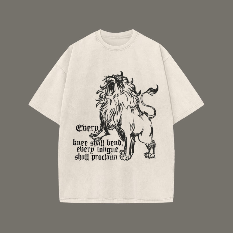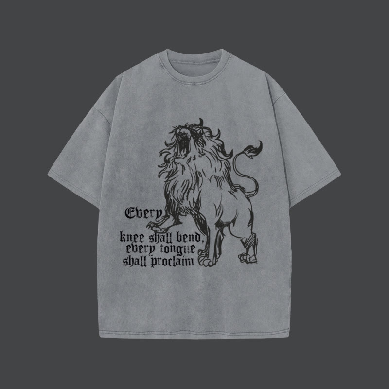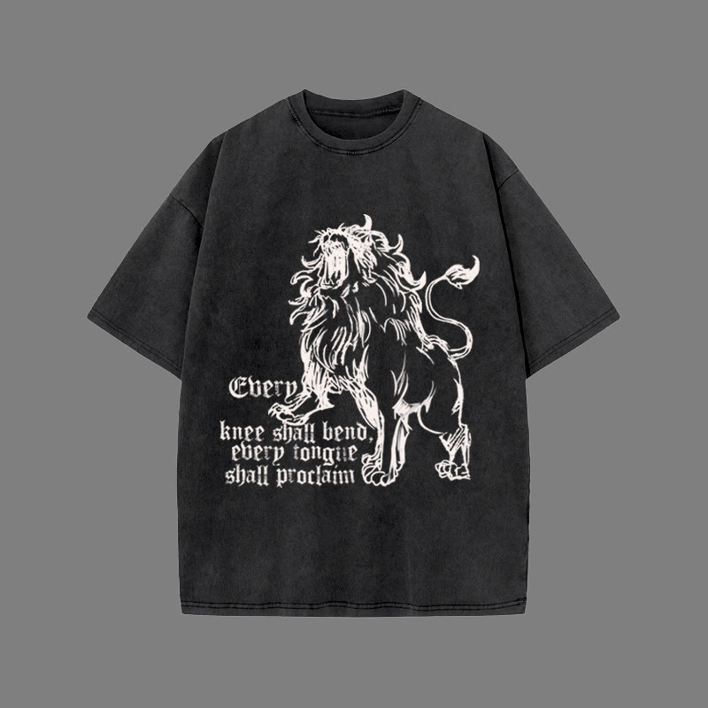 Unisex Every Knee Shall Bend Print Acid Washed T-shirt