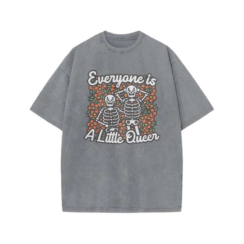 Unisex Everyone Is A Little Queer Print Acid Washed T-shirt