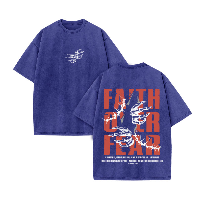 Unisex FAITH OVER FEAR Print Acid Washed T-shirt