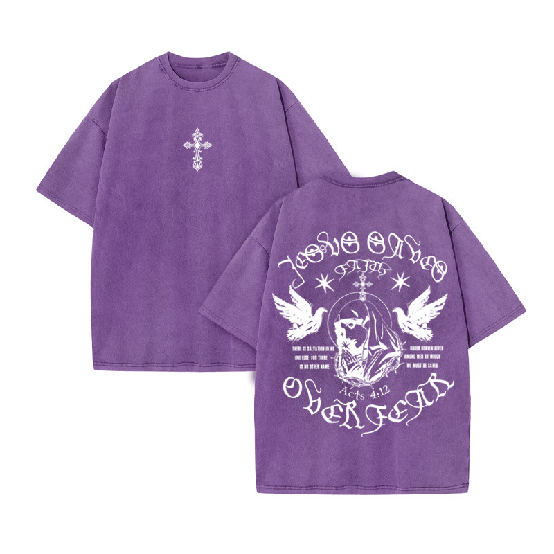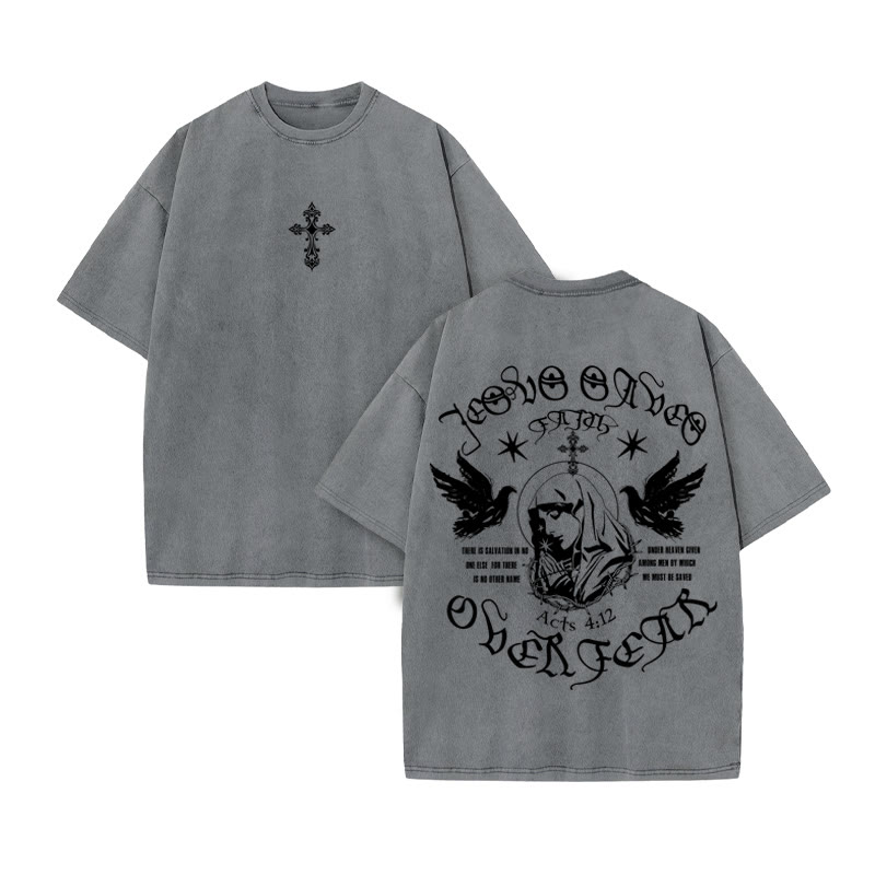 Unisex FAITH OVER FEAR Print Acid Washed T-shirt