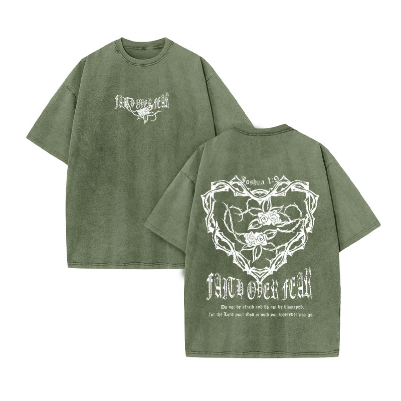 Unisex FAITH OVER FEAR Print Acid Washed T-shirt
