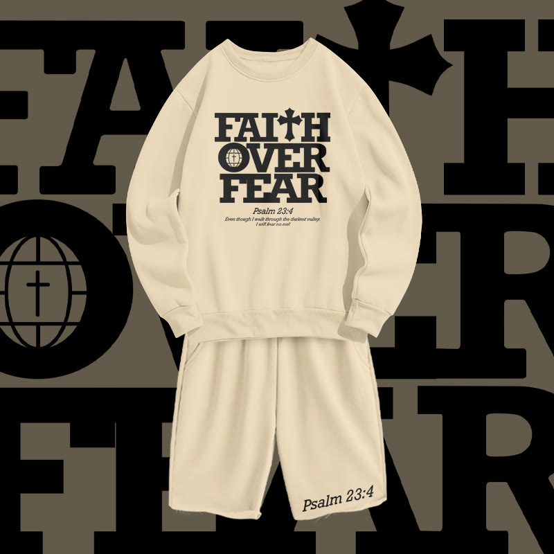Unisex Faith Over Fear Print Sweatshirt And Shorts Set