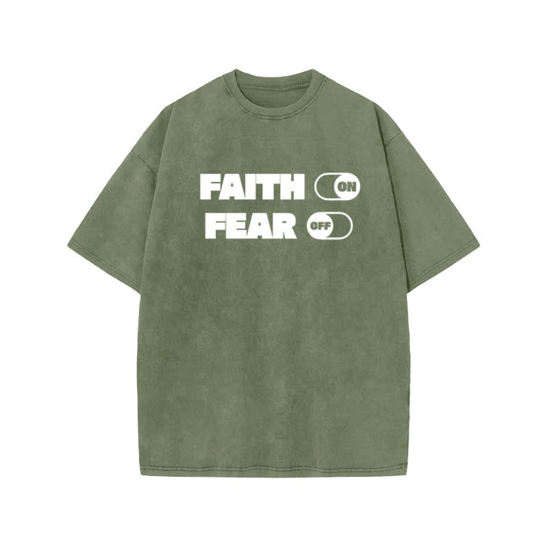 Unisex 100% Cotton Faith Switch Print Acid Washed T-shirt - Army Green - US20-22(3XL) - image 5