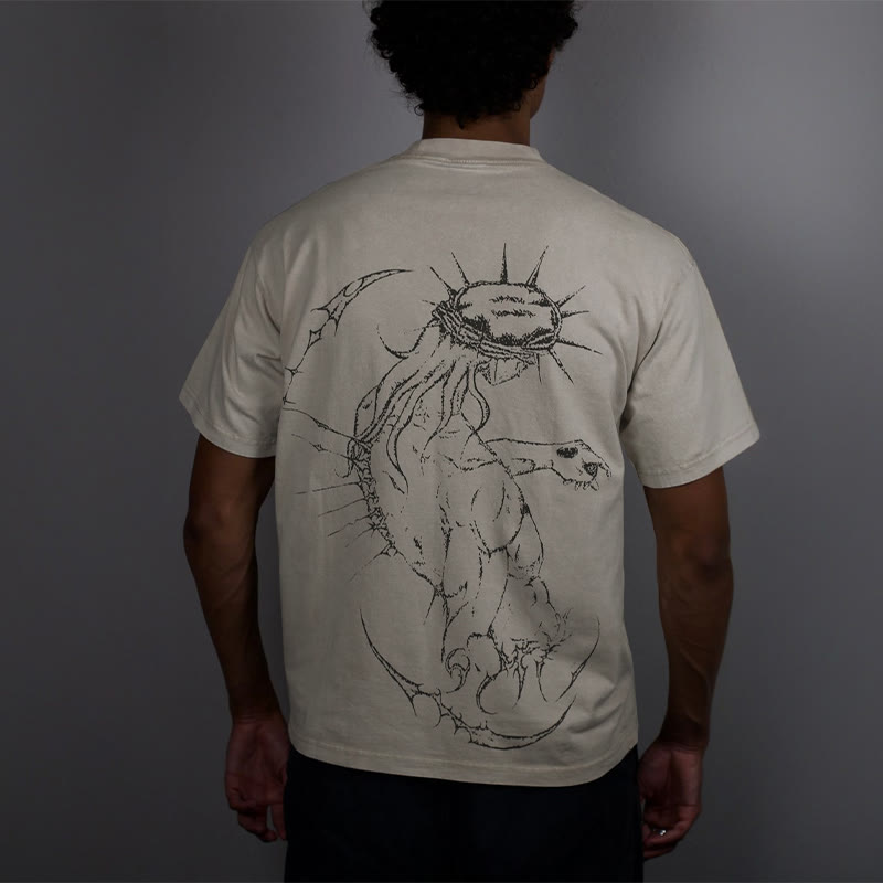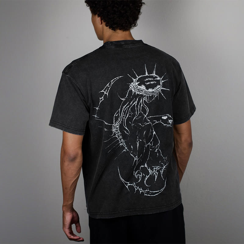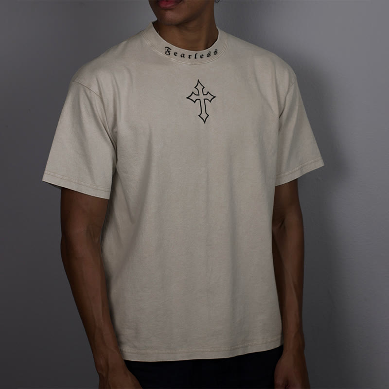 Unisex Fearless Cross Print Acid Washed T-shirt