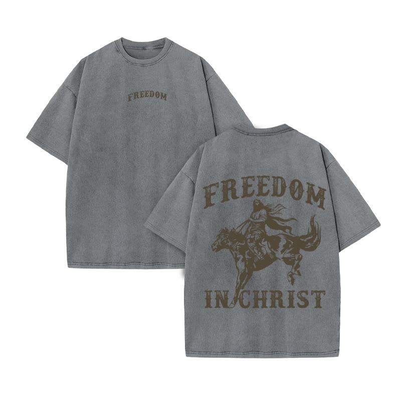 Unisex Freedom In Christ Print Acid Washed T-shirt