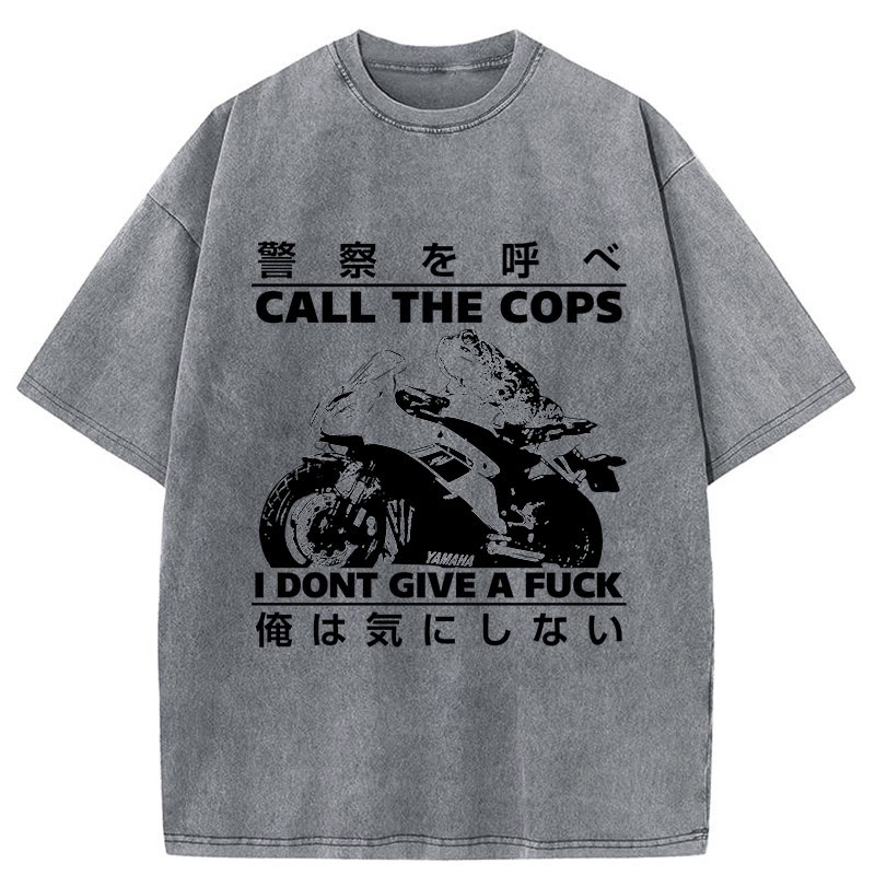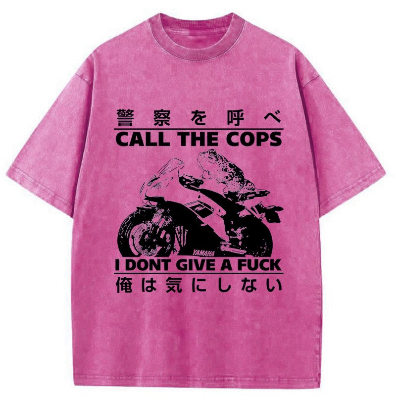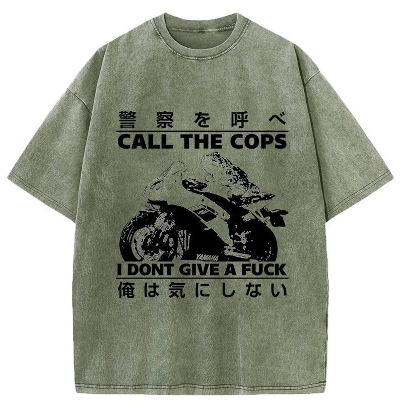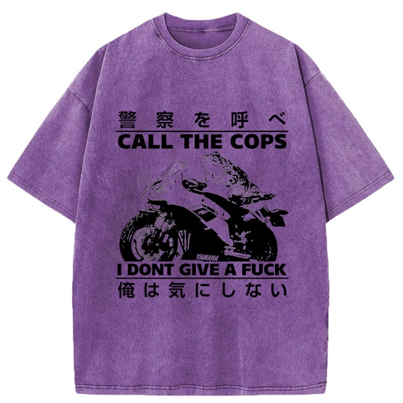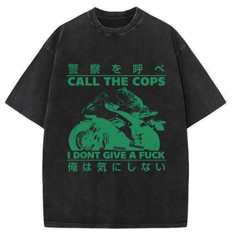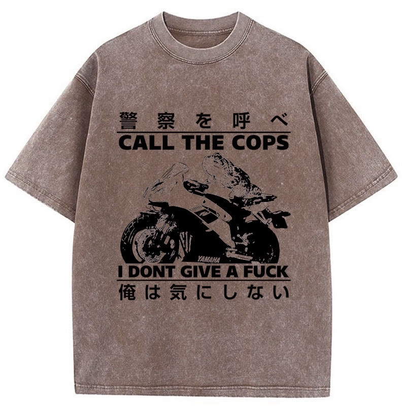 Unisex Funny Frog Riding A Motorcycle Print Acid Washed T-shirt