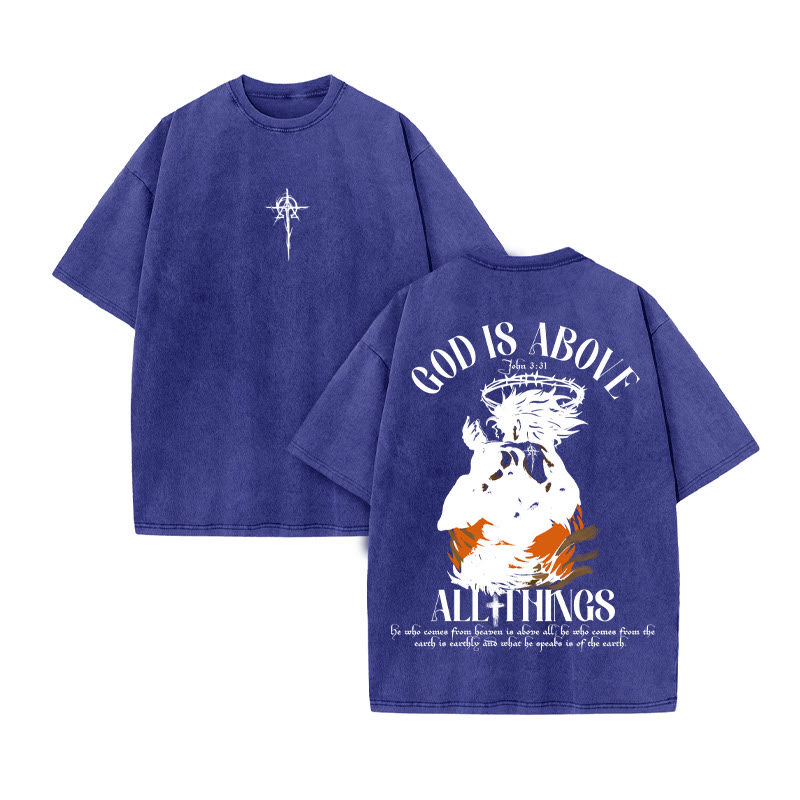 Unisex GOD IS ABOVE Print Acid Washed T-shirt