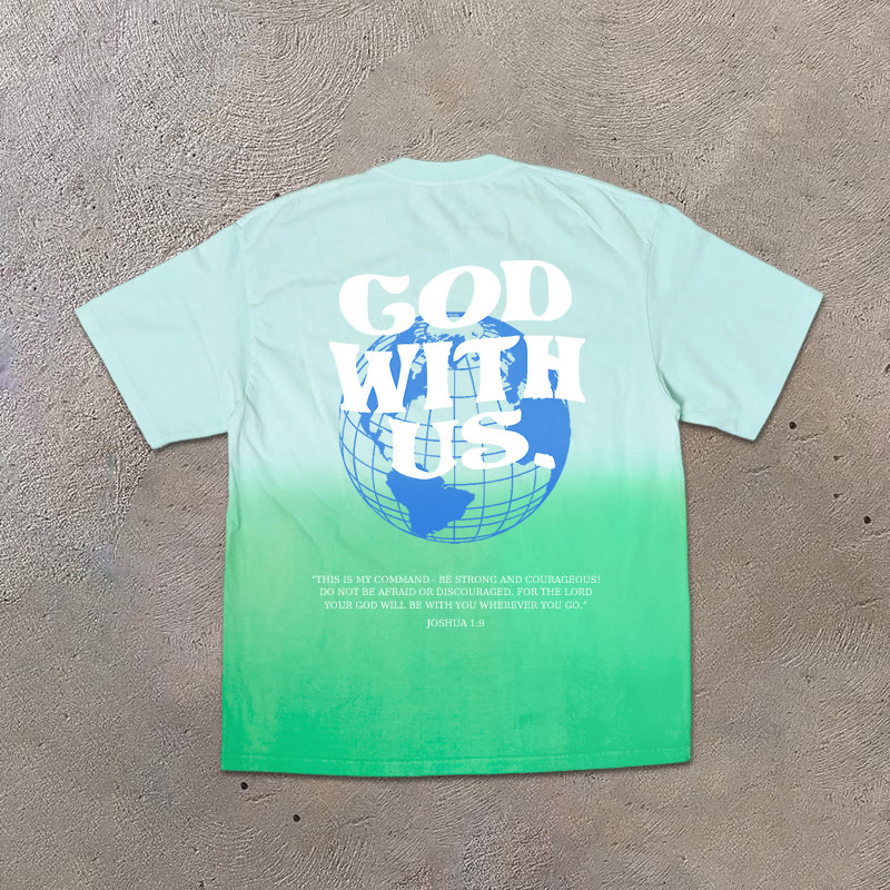 Unisex God With Us Print Ombre Acid Washed T-shirt