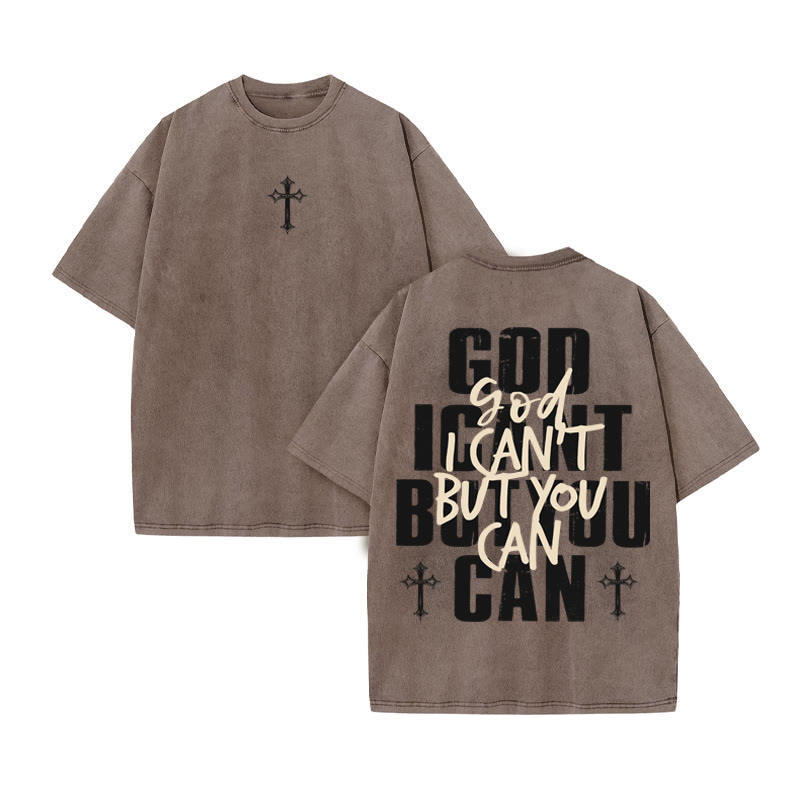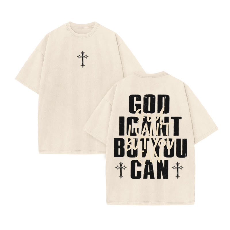 Unisex GOD YOU CAN Print Acid Washed T-shirt
