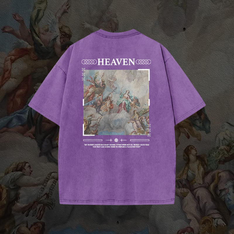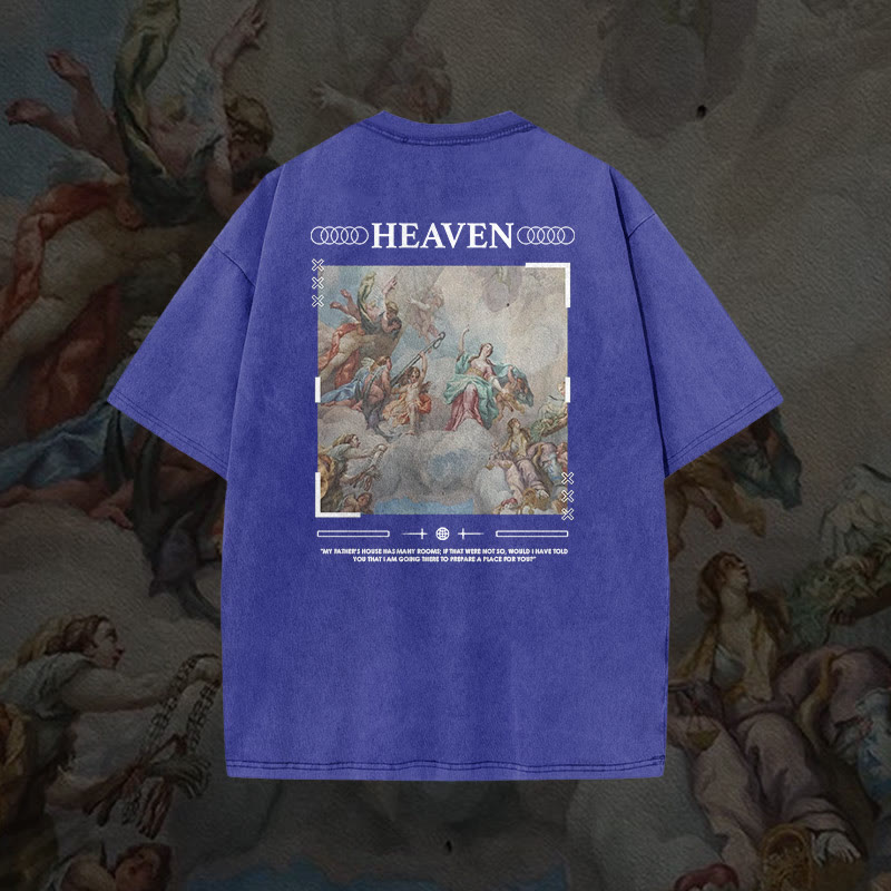 Unisex Heaven Printed Washed T-shirt