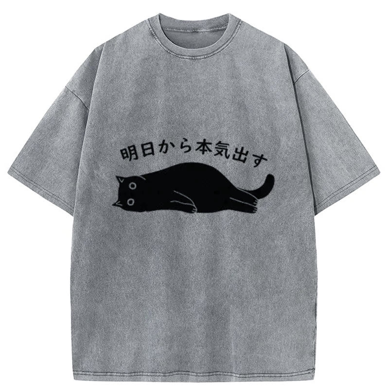 Unisex I'm Going To Get Serious Tomorrow Print Acid Washed T-shirt
