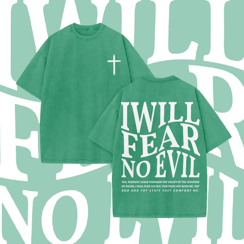 Unisex I Will Fear No Evil Print Acid Washed T-shirt