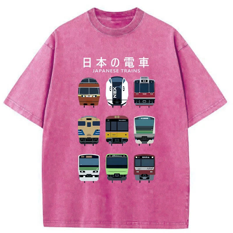 Unisex Japanese Train Collection Print Acid Washed T-shirt