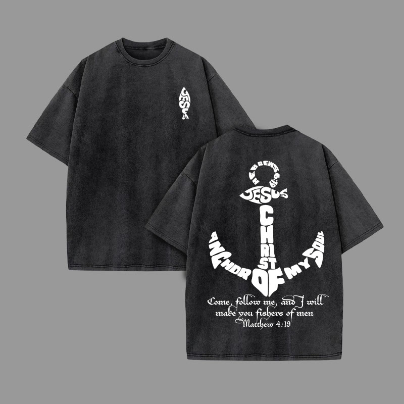 Unisex JESUE FISH Print Acid Washed T-shirt