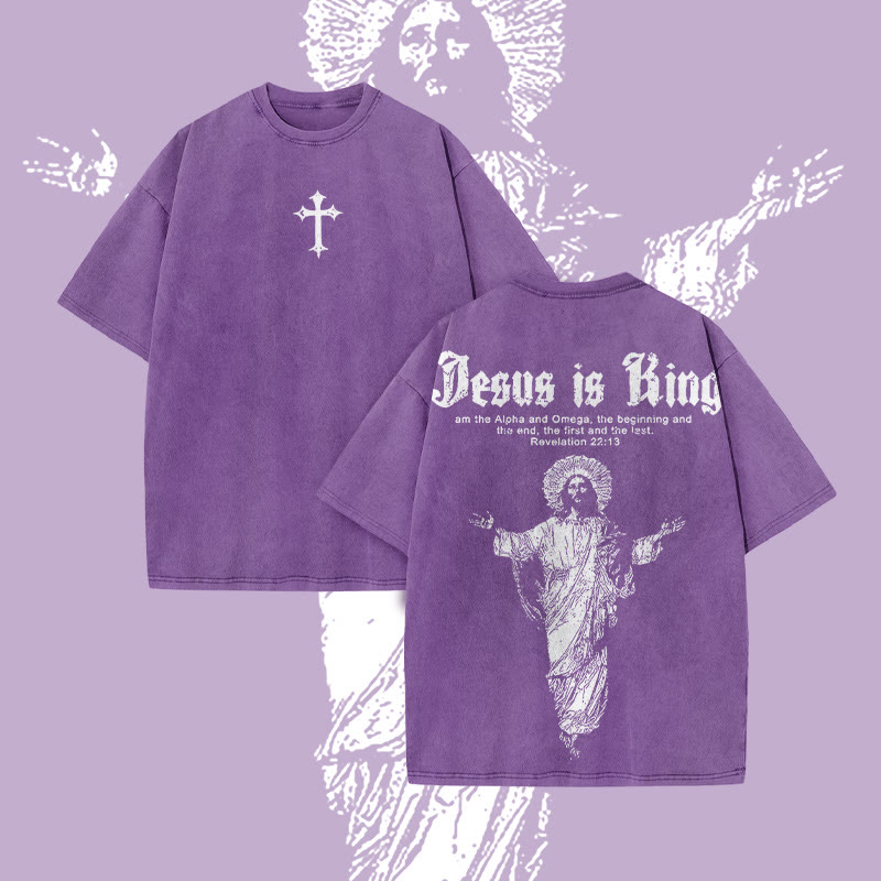 Unisex Jesus Is King Print Acid Washed T-shirt