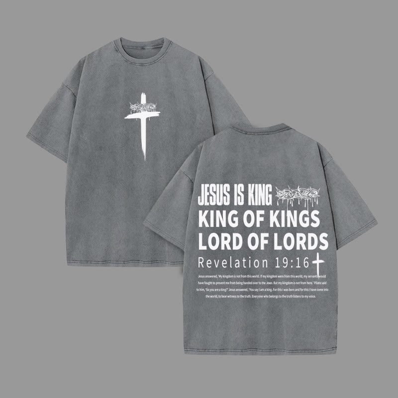 Unisex JESUS IS KING Print Acid Washed T-shirt