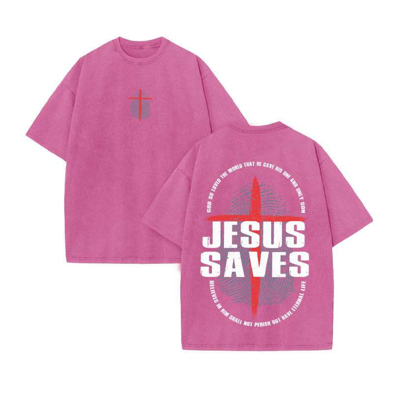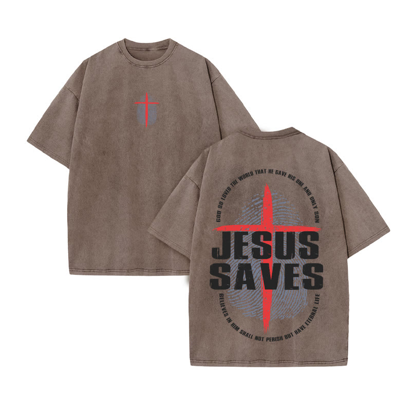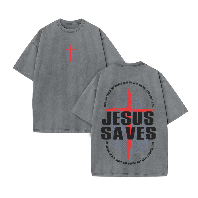 Unisex JESUS SAVES Print Acid Washed T-shirt