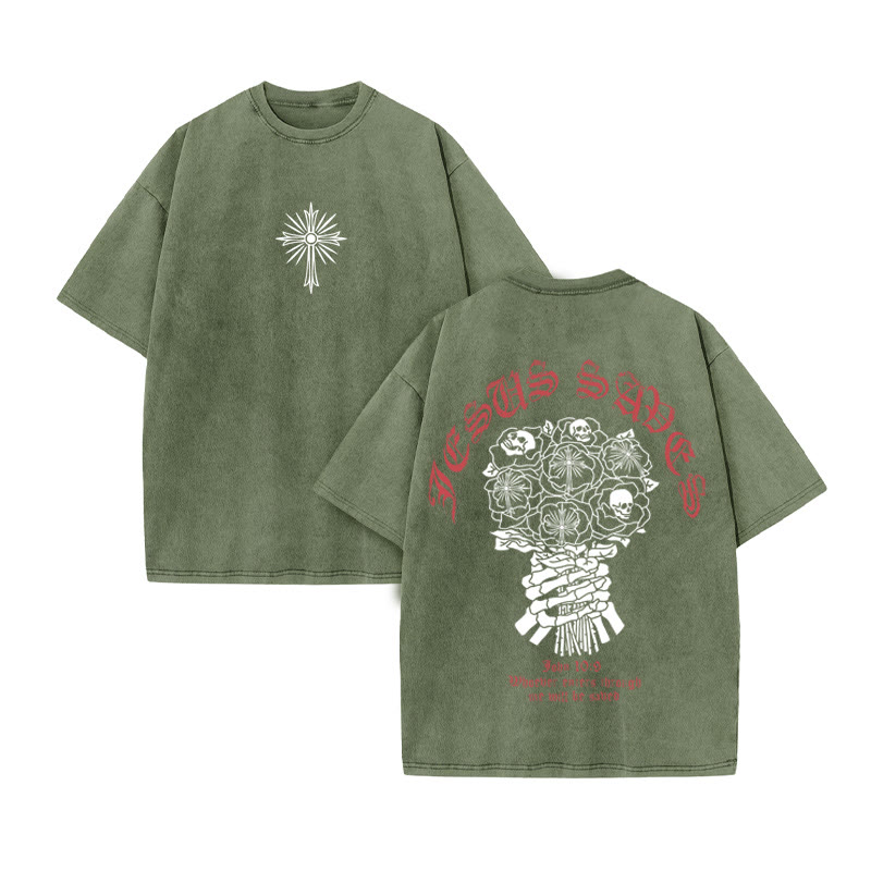 Unisex JESUS SAVES print Acid Washed T-shirt