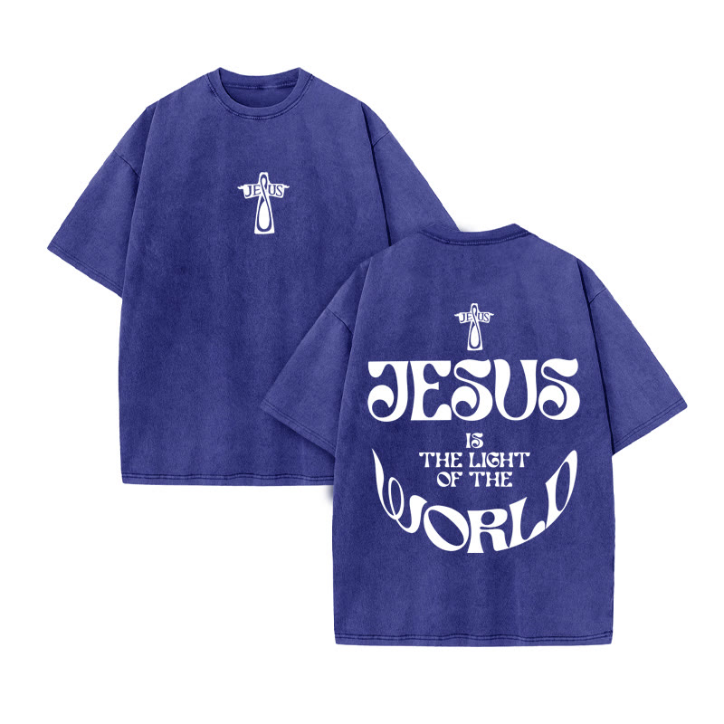 Unisex JESUS WORLD Print Acid Washed T-shirt