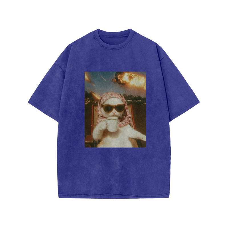 Unisex Just A Chill Cat Print Acid Washed T-shirt