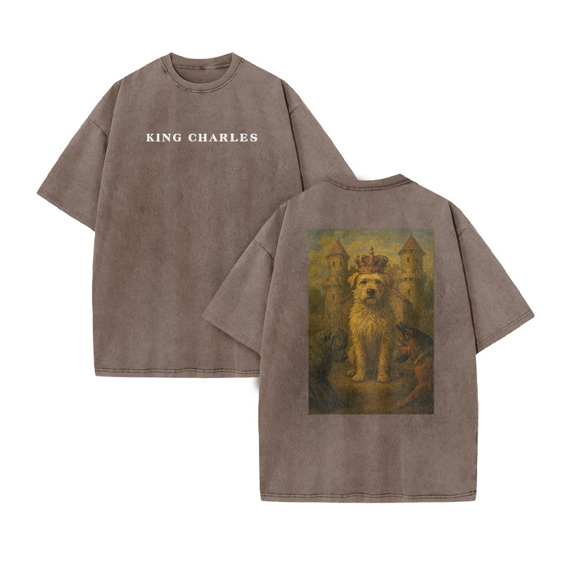 Unisex King Charles Dog Print Acid Washed T-shirt