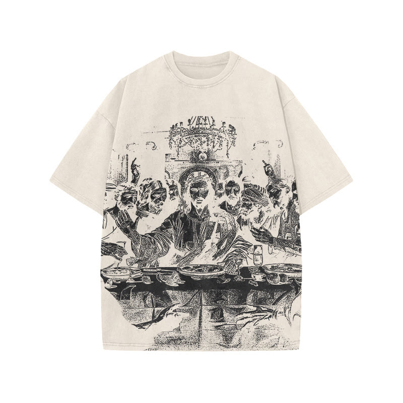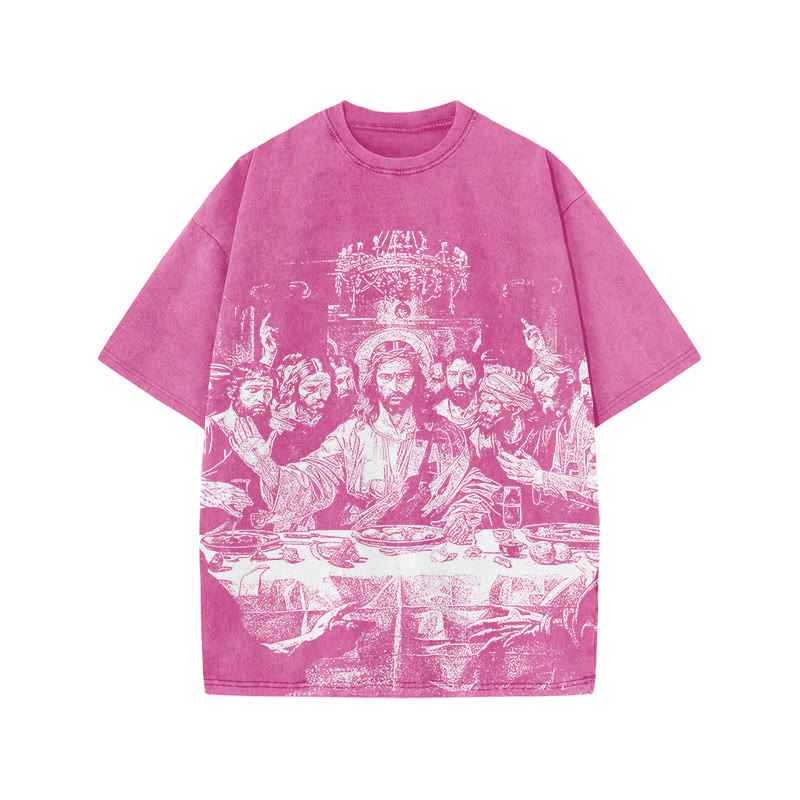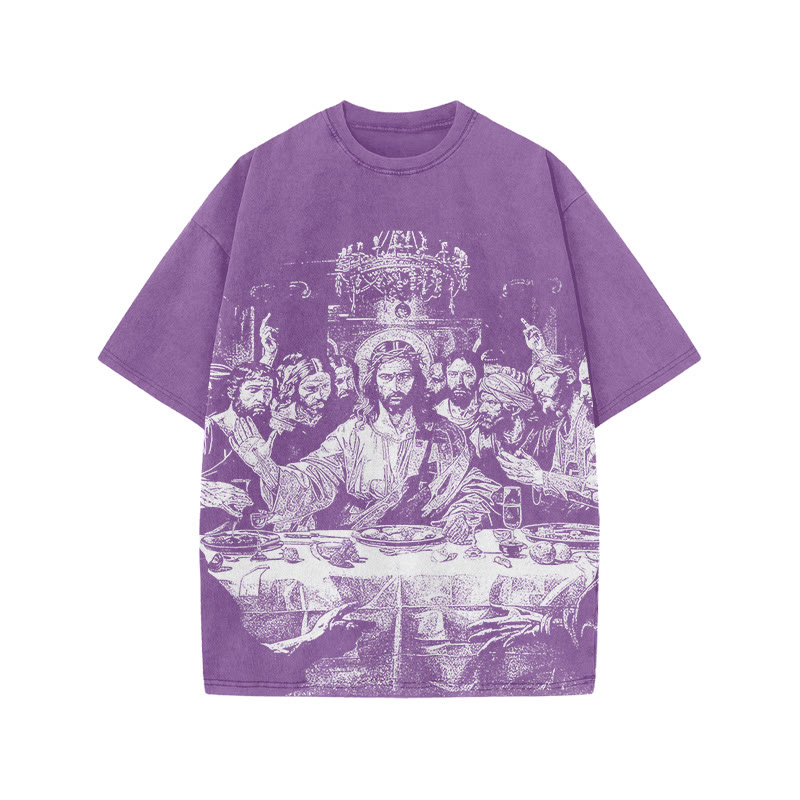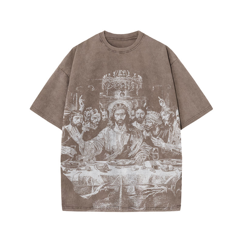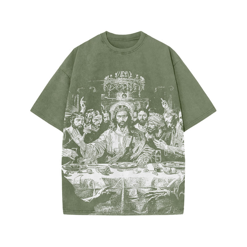 Unisex Last Supper Print Acid Washed T-shirt