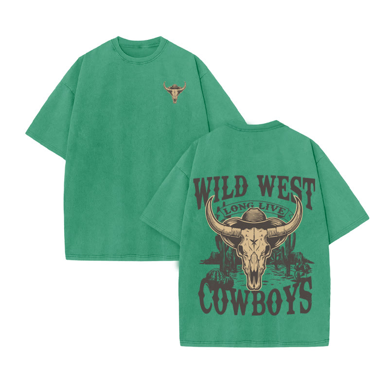 Unisex LONG LIVE Western Style Print Acid Washed T-shirt