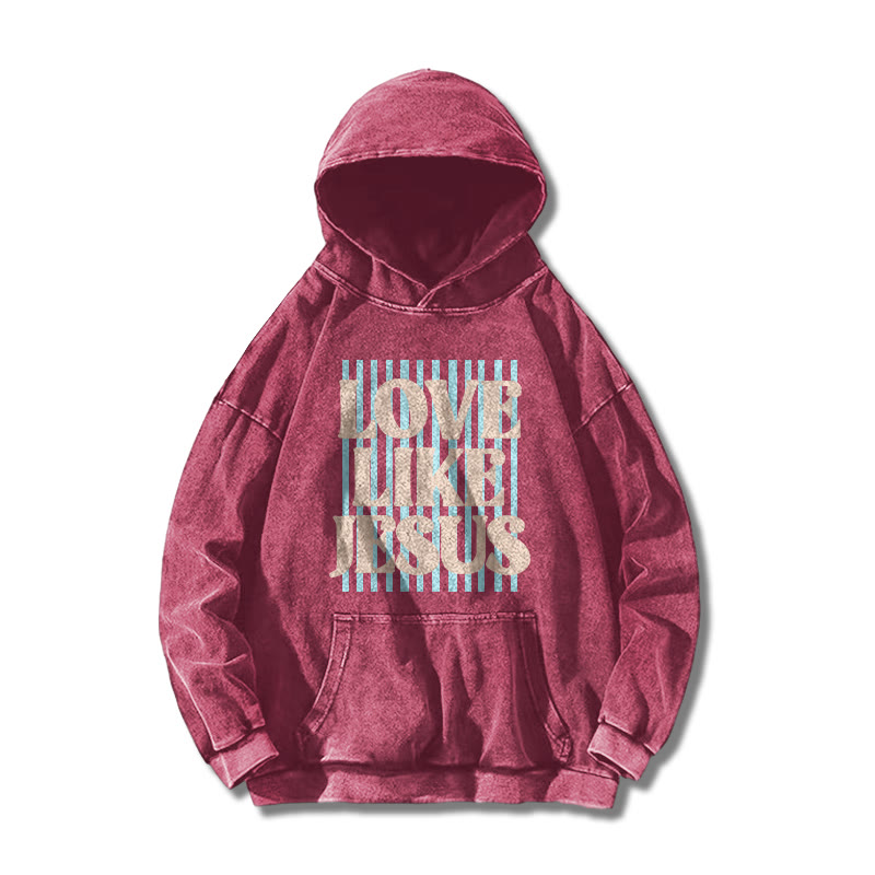 Unisex 100% Cotton Love Like Jesus Printed Washed Hoodie  - Rose - US16-18(2XL) - image 5