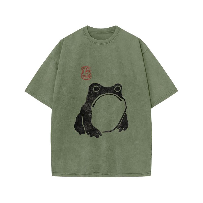 Unisex 100% Cotton Matsumoto Hoji Woodblock Print Frog Art Acid Washed T-shirt