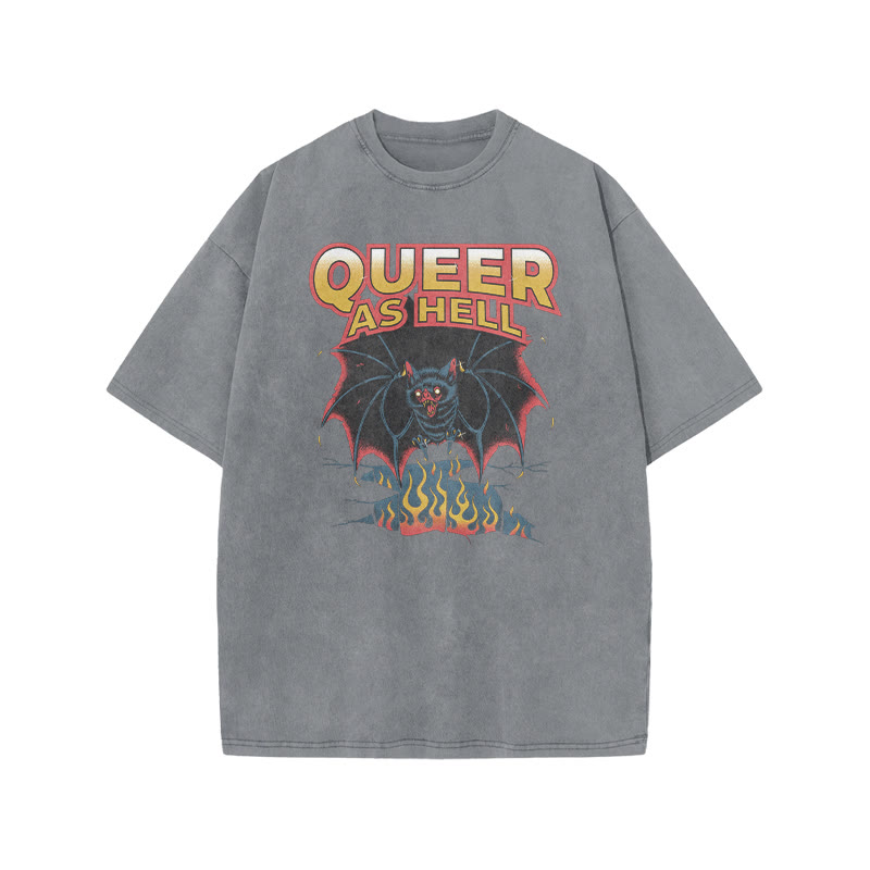 Unisex Queer As Hell Print Acid Washed T-shirt
