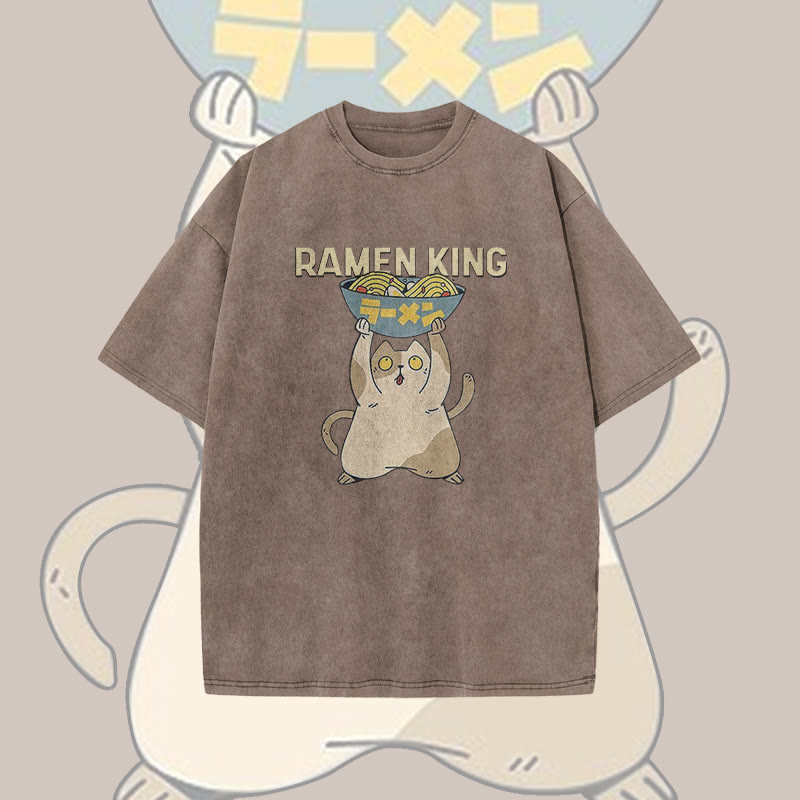 Unisex Ramen King Print Acid Washed T-shirt