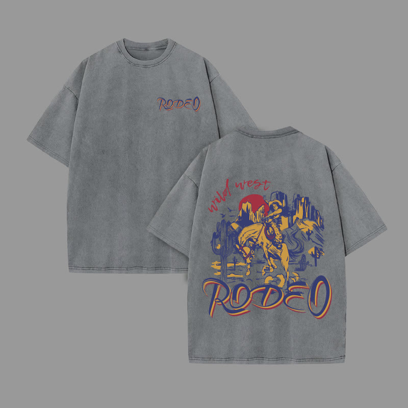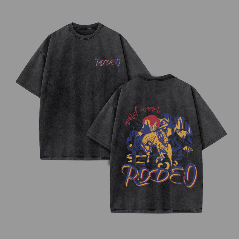 Unisex RODEO Print Acid Washed T-shirt