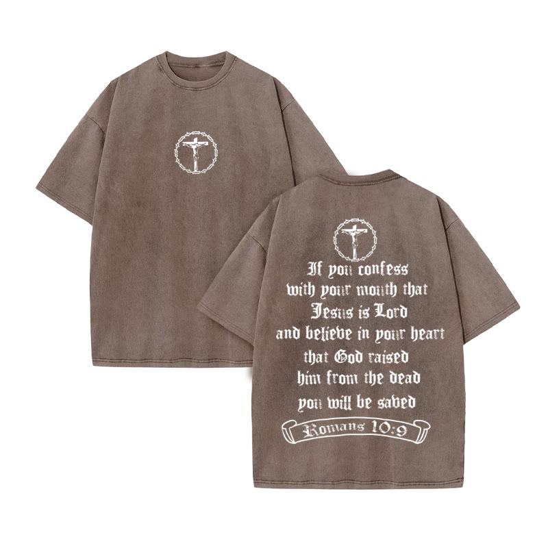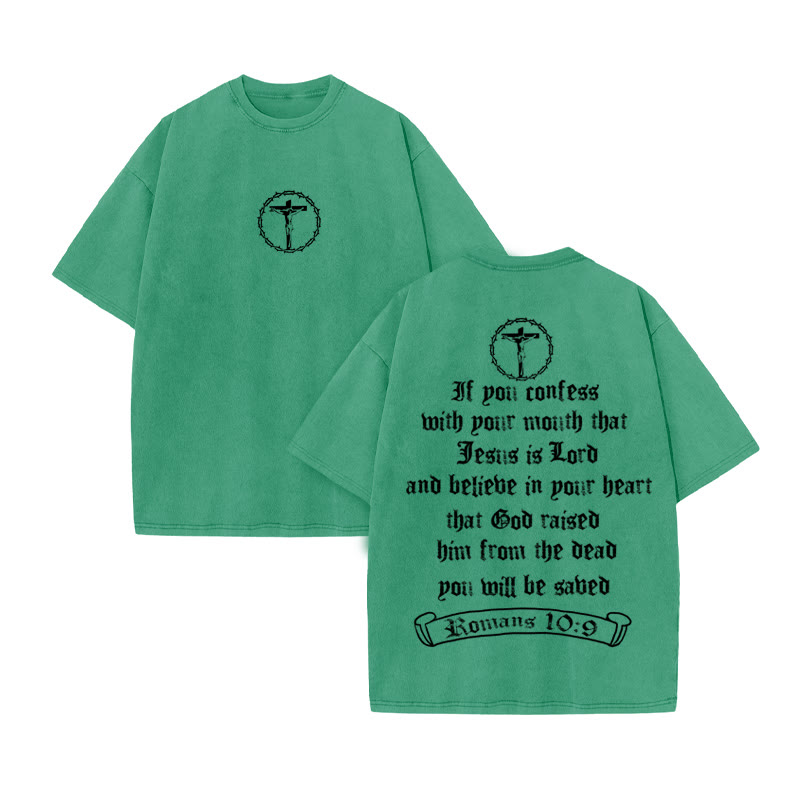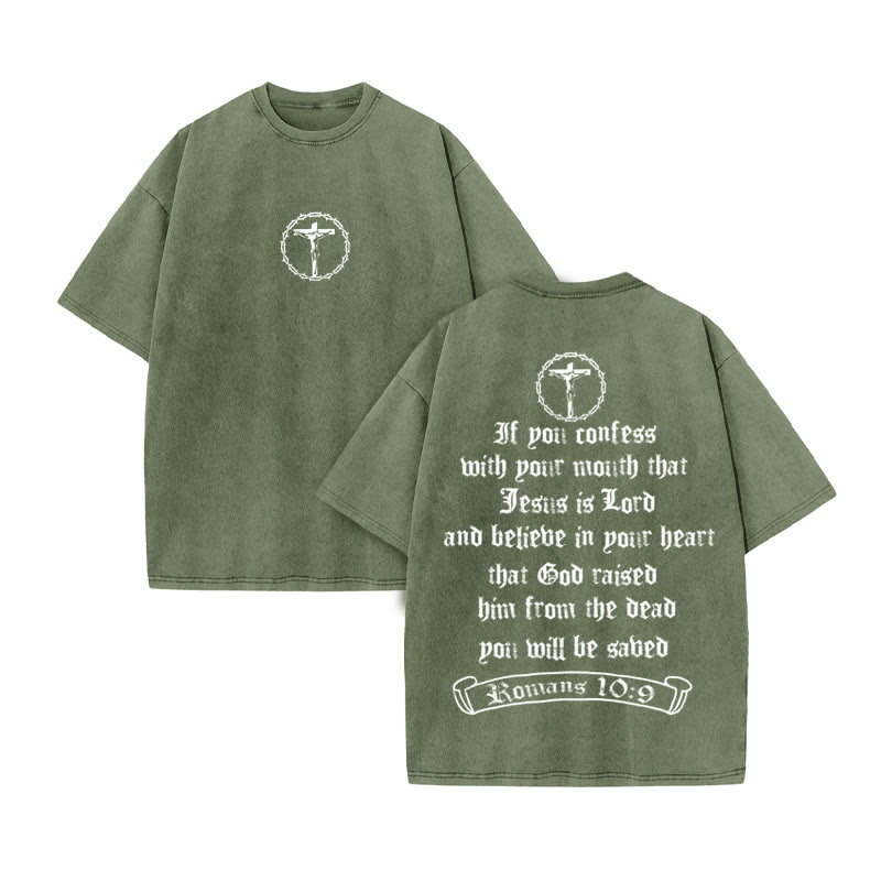 Unisex Romans10:9 Print Acid Washed T-shirt