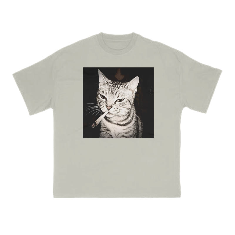 Unisex Smoking Tabby Cat Print T-shirt
