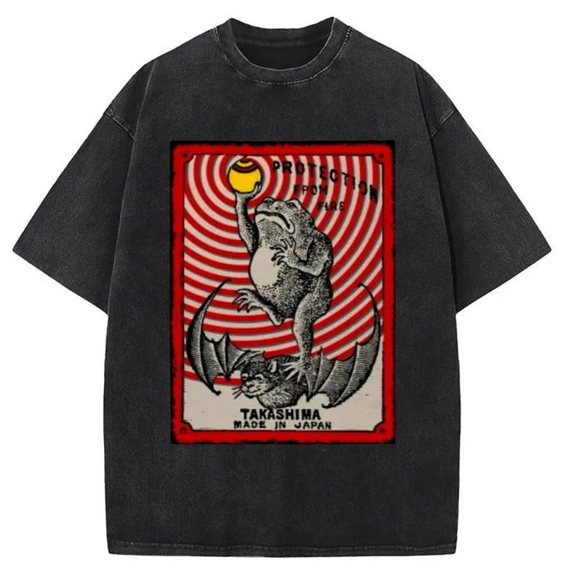 Unisex Takashima Matchbox Japanese Print Acid Washed T-shirt