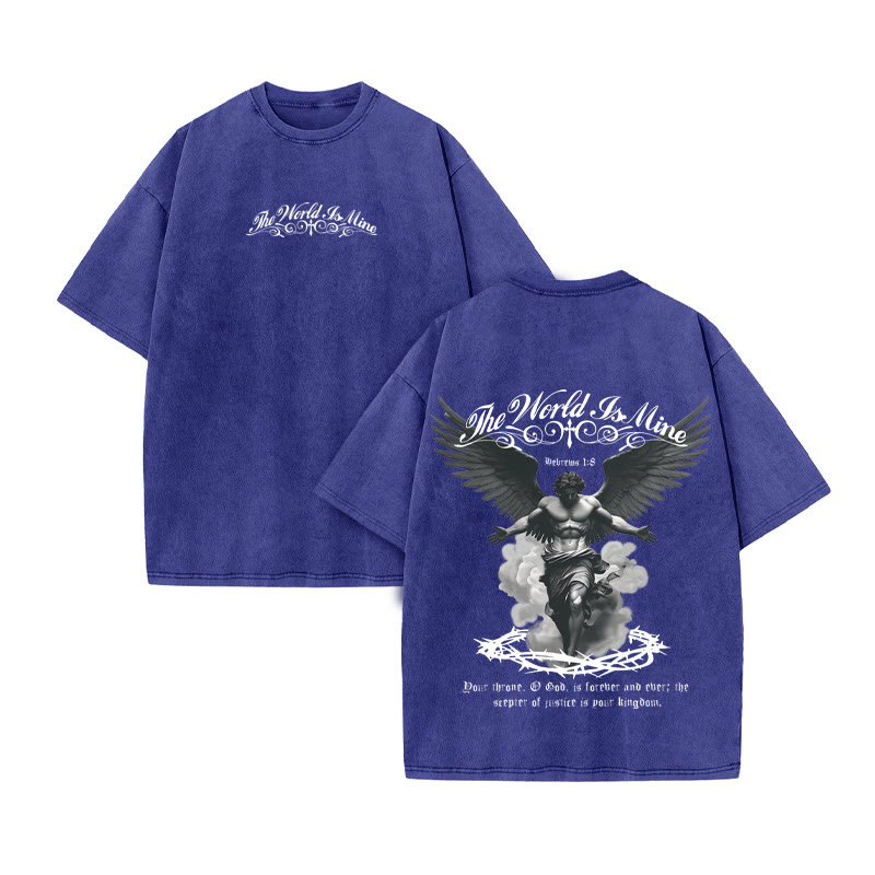 Unisex THE WORLD IS MINE Print Acid Washed T-shirt