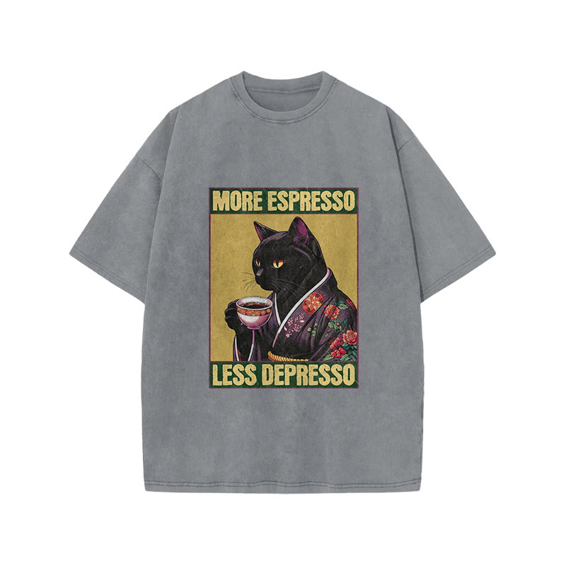 Unisex Up Caffeine Down Depression Vintage Print Acid Washed T-shirt