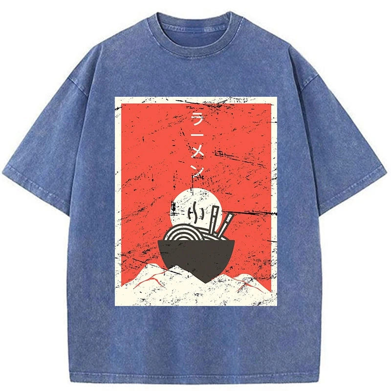 Unisex Vintage Japanese Anime Ramen Print Acid Washed T-shirt