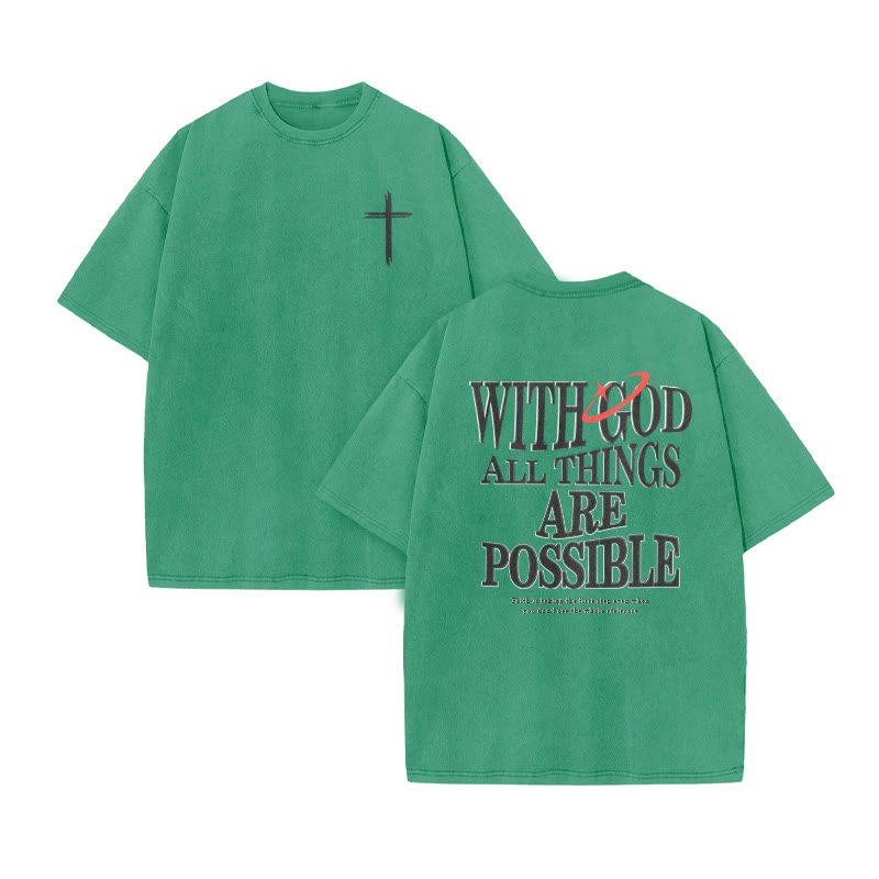 Unisex With God All Things Are Possible Print Acid Washed T-shirt