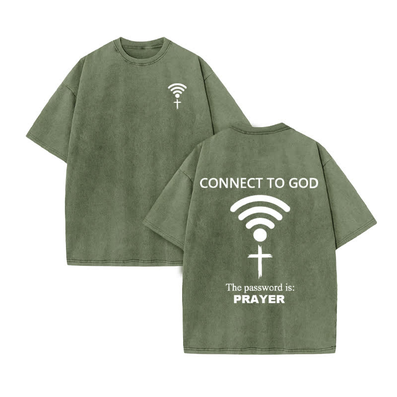 Unisex Connect To God The Password Is Prayer Print Acid Washed T-shirt