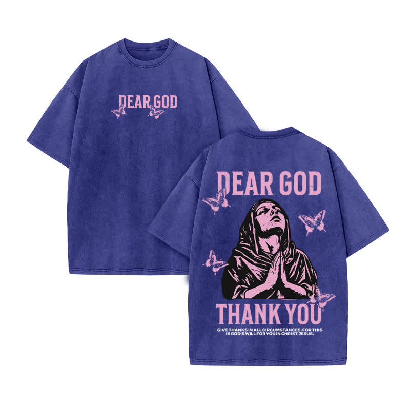 Unisex Thank You Dear God Print Acid Washed T-shirt