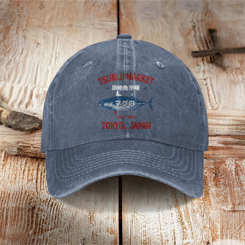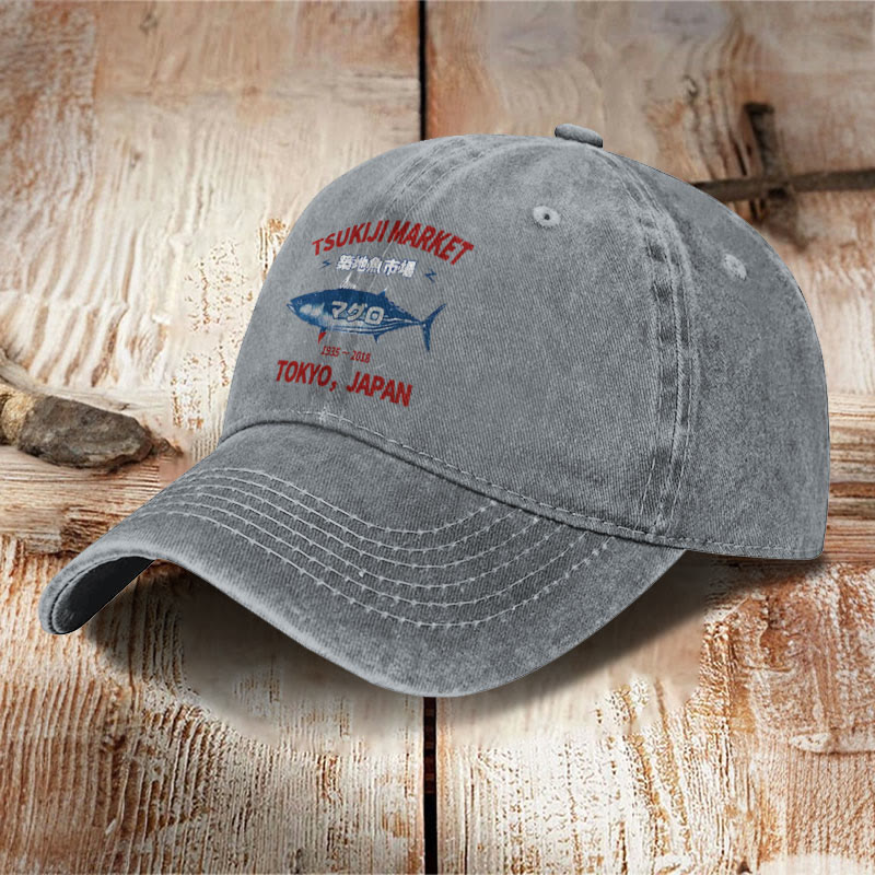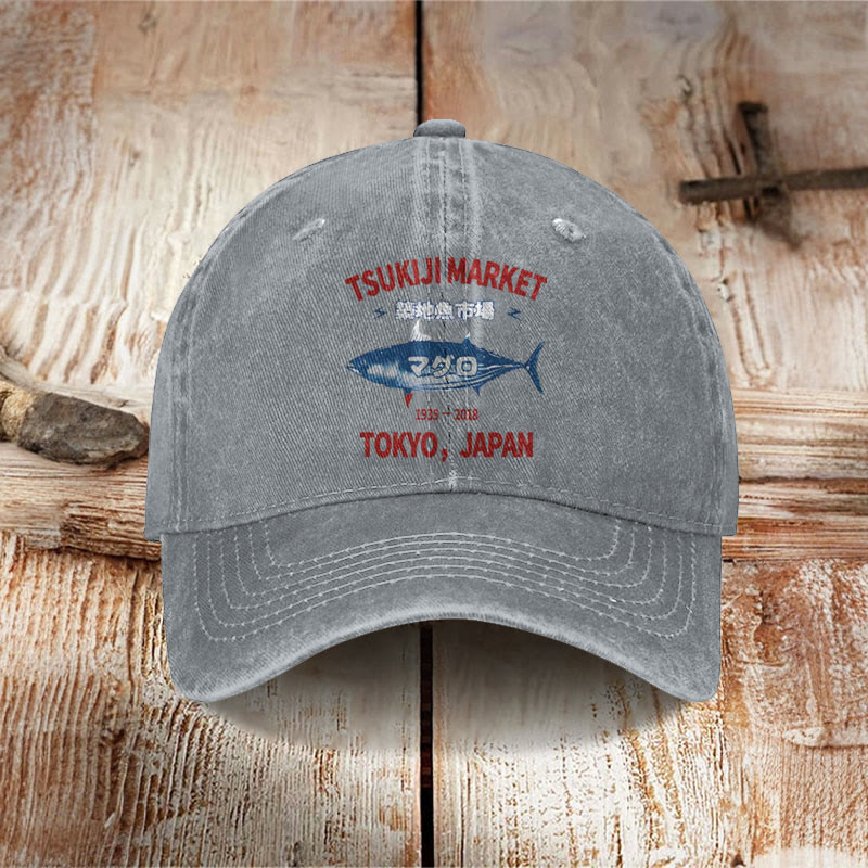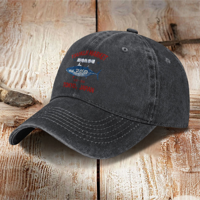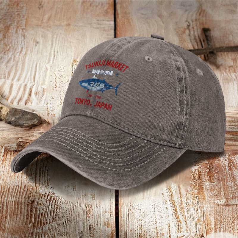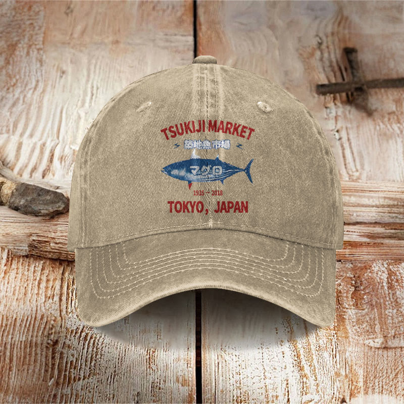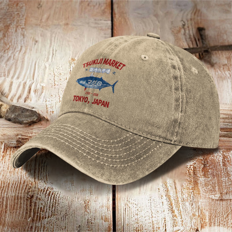 Unisex Tsukiji Market Print Washed Cap
