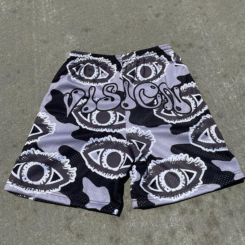 Unseen Vision Eyes Print Casual Mesh Shorts