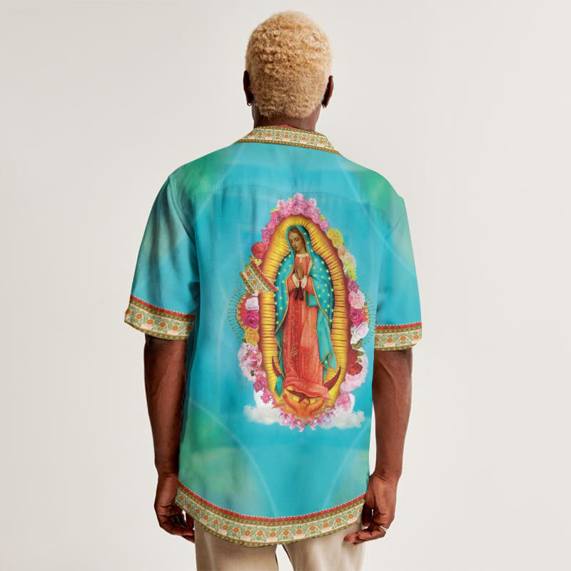 Virgin Mary Print Camp-collar Shirt